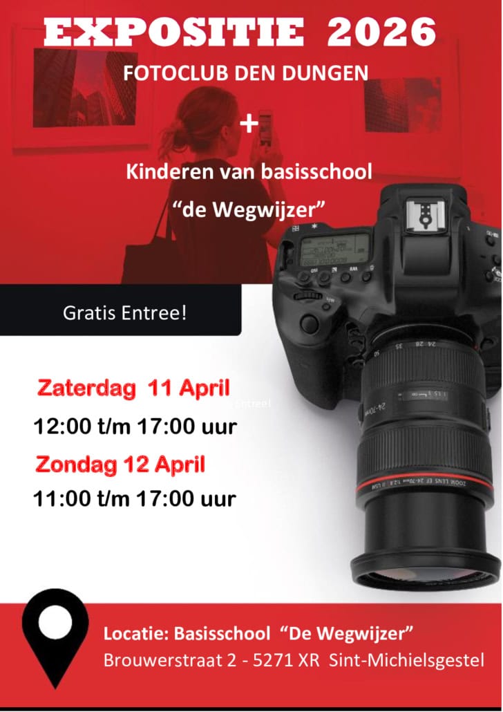 Fotoclub Den Dungen nodigt liefhebbers van fotografie van harte uit om in het weekend van 11 en 12 april onze jaarlijkse, gezellig ingerichte expositie te bezoeken.
